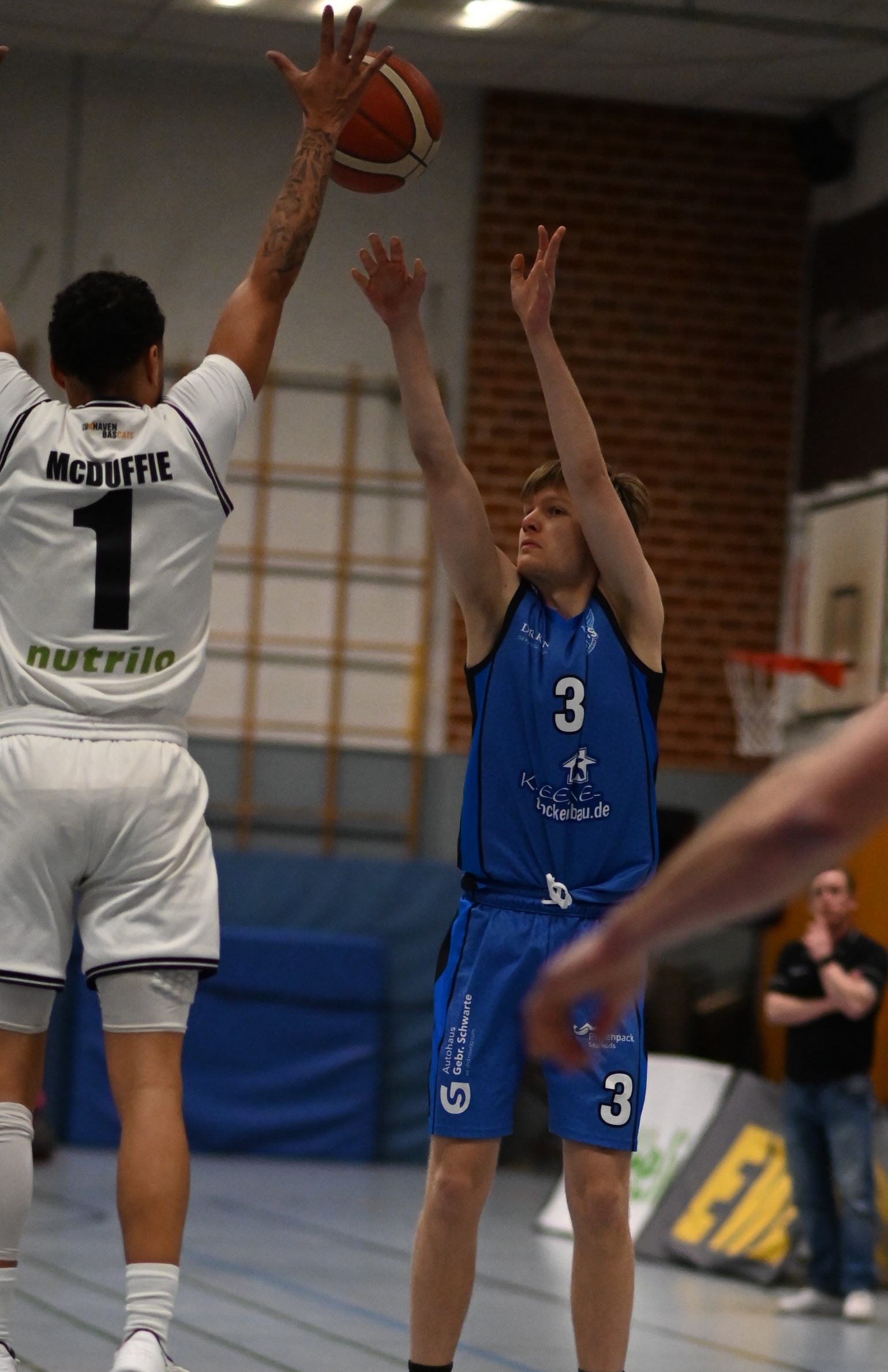 Auch zu Beginn des Schlussviertels war Fortuna wieder voll im Spiel. Nach 33 Minuten betrug der Rückstand nur noch 60:65, die Hoffnung auf eine Wende lebte. Doch dann folgte die spielentscheidende Phase: Zwei schnelle Dreier von Deon McDuffie innerhalb von 35 Sekunden rissen erneut ein Loch. Spätestens ein spektakulärer Distanztreffer von Darron McDuffie vier Minuten vor Schluss zum 78:62 raubte den Gästen den letzten Glauben an ein Comeback. Cuxhaven spielte die Partie anschließend routiniert zu Ende.
