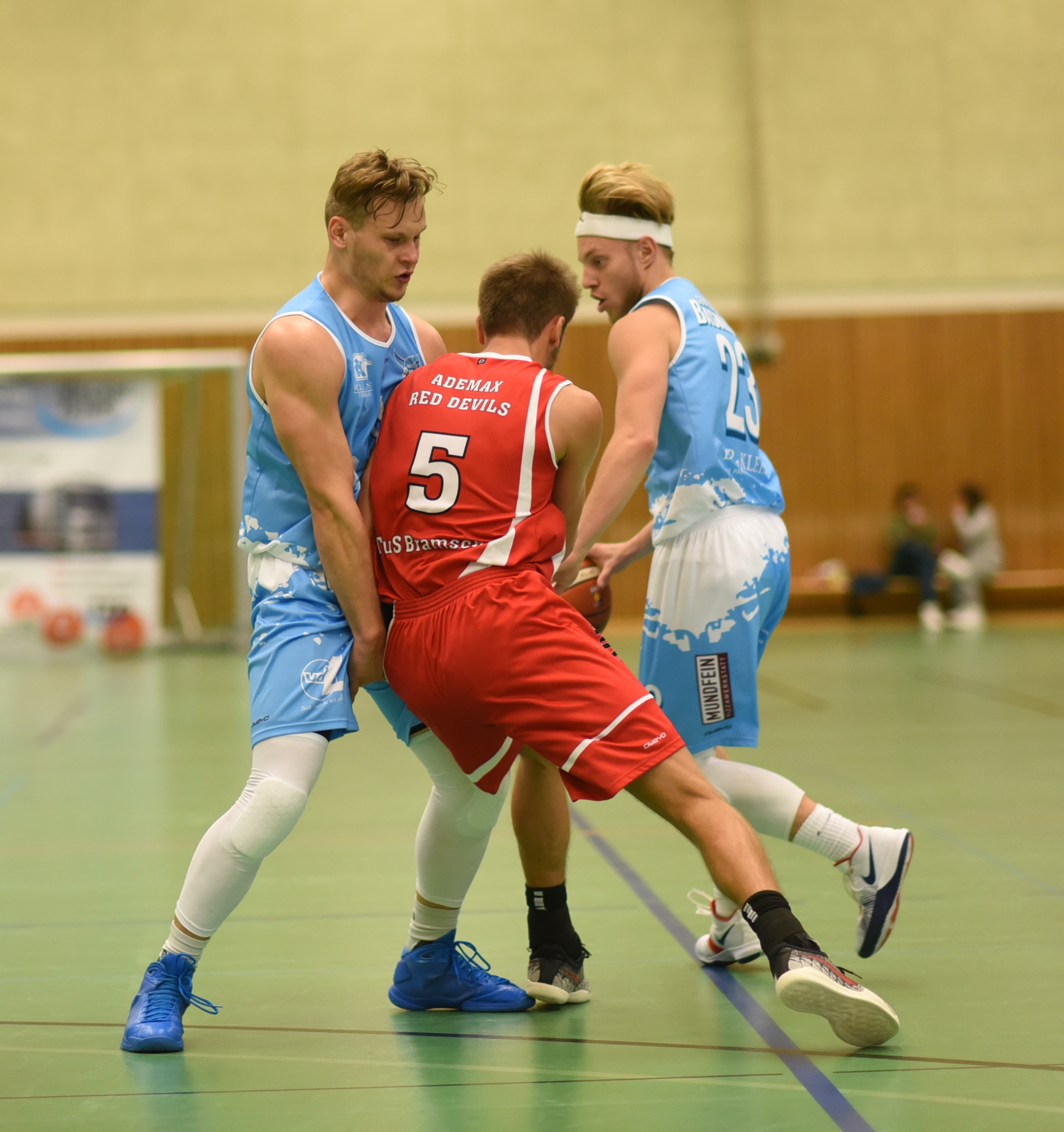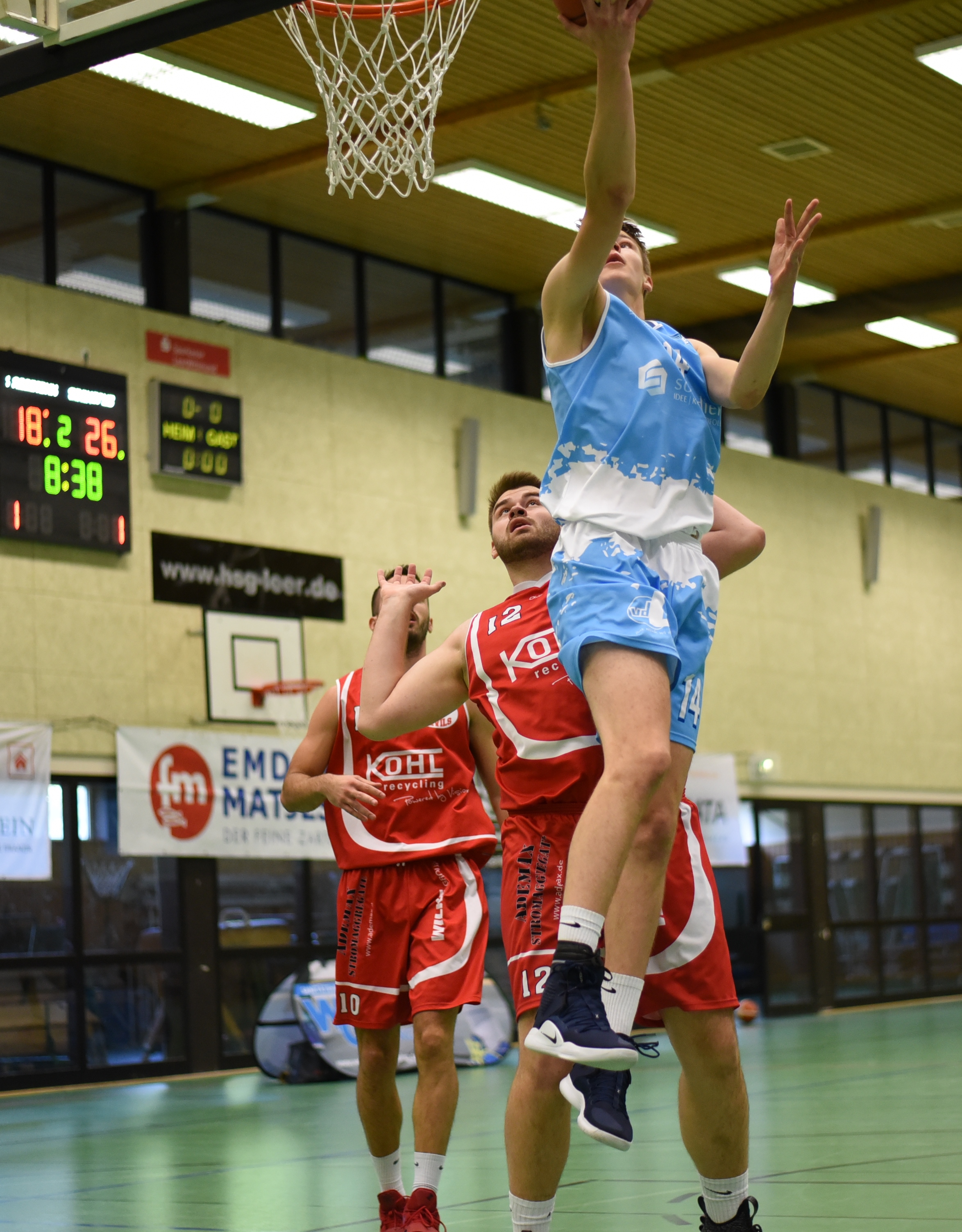 Hier glich Maleckas in der 33. Minute das Spiel noch einmal zum 65:65 aus. Es folgte die verflixte 33. Druck in der Defense nicht klar und haben dreimal die falsche Entscheidung getroffen und den freien Mann nicht gesehen“, ärgerte sich Finn Höncher. Sein Team kam zwar noch einmal auf 71:74 heran, doch der Aufstiegsfavorit antwortete zum vorentscheidenden 81:71 vier Minuten vor dem Ende. Aufgeben taten die Baskets zwar nicht, aber für eine Wende langte es gegen die erfahrenen Gäste nicht mehr. „Insgesamt bin ich stolz auf das was wir gezeigt haben, die Defense war über weite Strecken überragend“, fand Finn Höncher, der ein Sonderlob für Debütant Nanne Georgs über hatte. Der 17-Jährige setzte sich mehrfach unter dem Korb durch und sammelte wichtige Rebounds ein