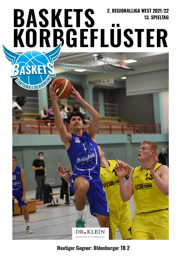 Das nächste Heimspiel der Saison 2021/2022. Hintergrundinfos zu den Spielern und den Köpfen hinter der Mannschaft, dem Verein und den Sponsoren sowie zu den weiteren Mannschaften der Basketballsparte des Fortuna Logabirum e.V. könnt ihr in unserem „Korbgeflüster“ nachlesen. Ein gedrucktes Exemplar gibt es bei jedem Heimspiel. Online steht es euch im Newsbereich zur Verfügung. Veröffentlicht werden die Spieltagshefte zukünftig jeweils einen Tag nach dem Spiel.