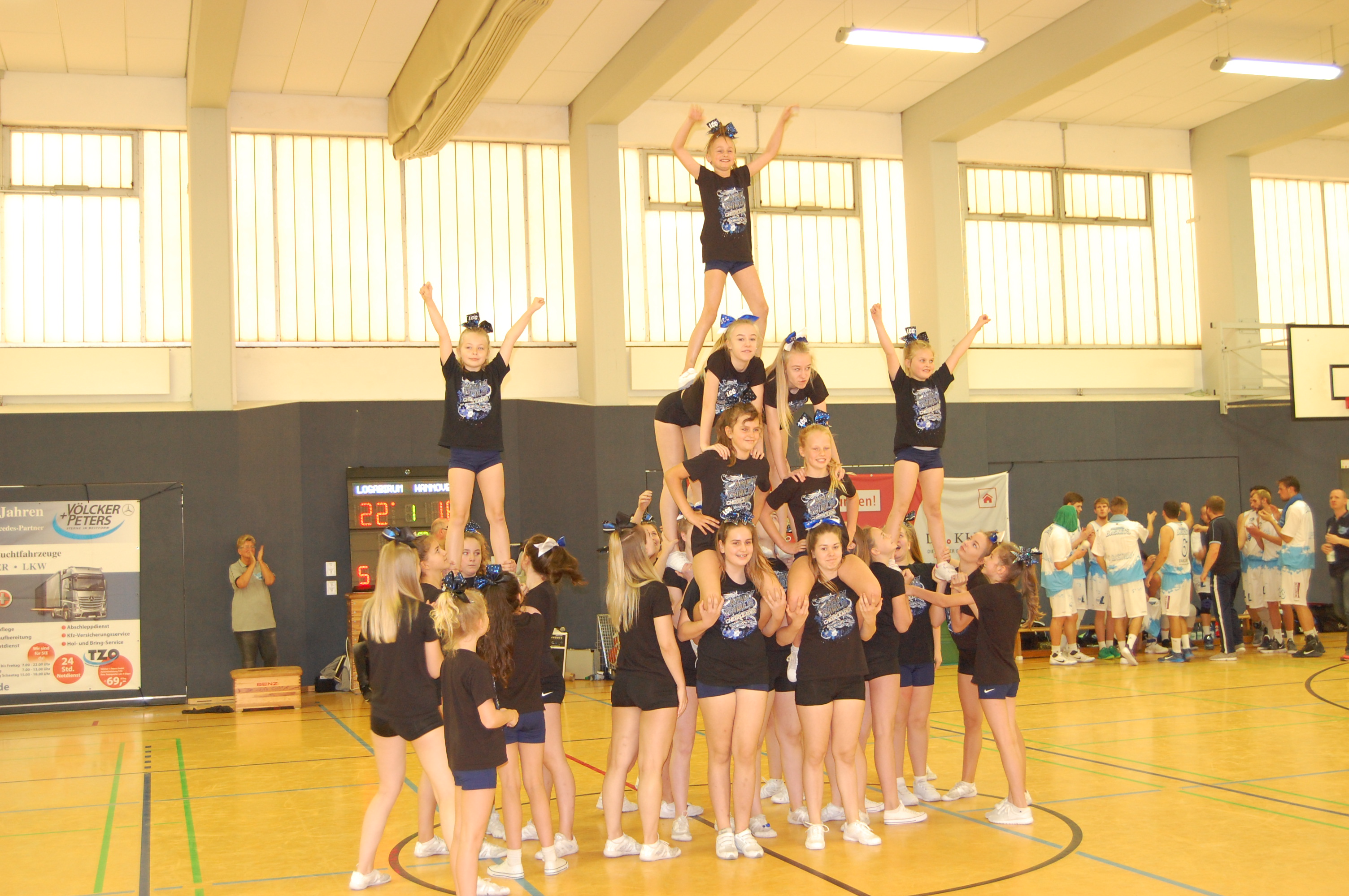 Über 200 Leute in der ausverkauften Friesenschule waren begeistert vom neuen Spieltagsheft und auch vom Rahmenprogramm, was die Baskets auf die Beine gestellt haben. Besonders die Candy Girls Cheerleader kamen bei den Besuchern gut an. Sie spendeten viel Applaus für die Darbietungen der Gruppe.