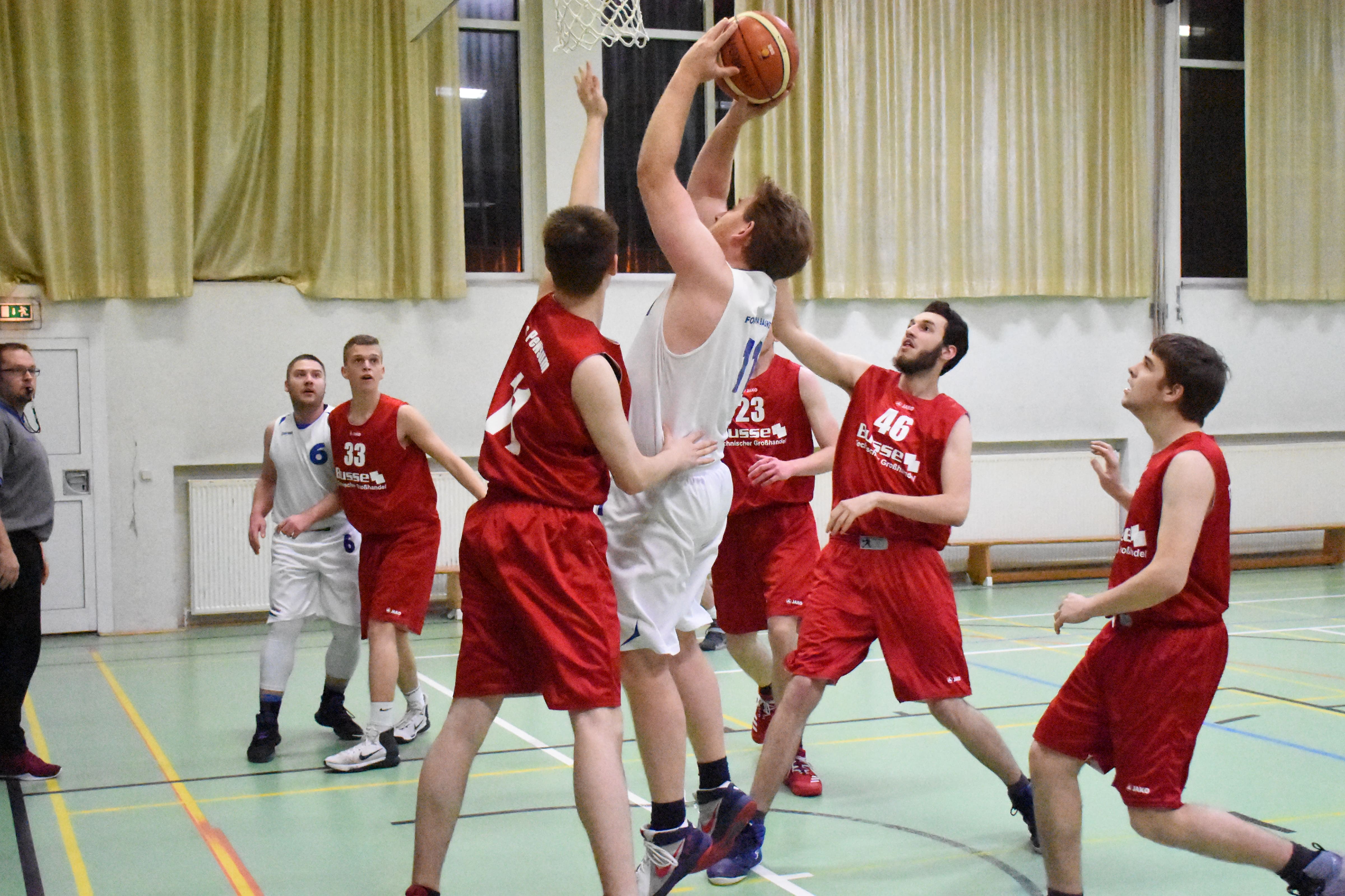 Dabei waren es die Gäste, die das Spiel mit einem wahren Feuerwerk eröffneten. Gleich drei Dreier gelangen ihnen in den ersten sieben Minuten und überraschend waren sie damit sogar 13:12 vorne. Bis zum Viertelende drehten die Gastgeber die Partie und führten mit 18:13. Im zweiten Viertel zog die Fortuna zunächst auf 27:16 davon, ehe sich wiederum einige Lücken in der Verteidigung offenbarten. Immer wieder ließen sie die Krummhörner werfen und die schienen wahrlich Zielwasser getrunken zu haben. Vor allem Marcel Bohr mit insgesamt fünf Dreiern reagte heraus. Nach 18 Minuten stand es nur noch 31:25, bis zur Halbzeit konnte Logabirum den Vorsprung leicht auf 35:27 ausbauen.