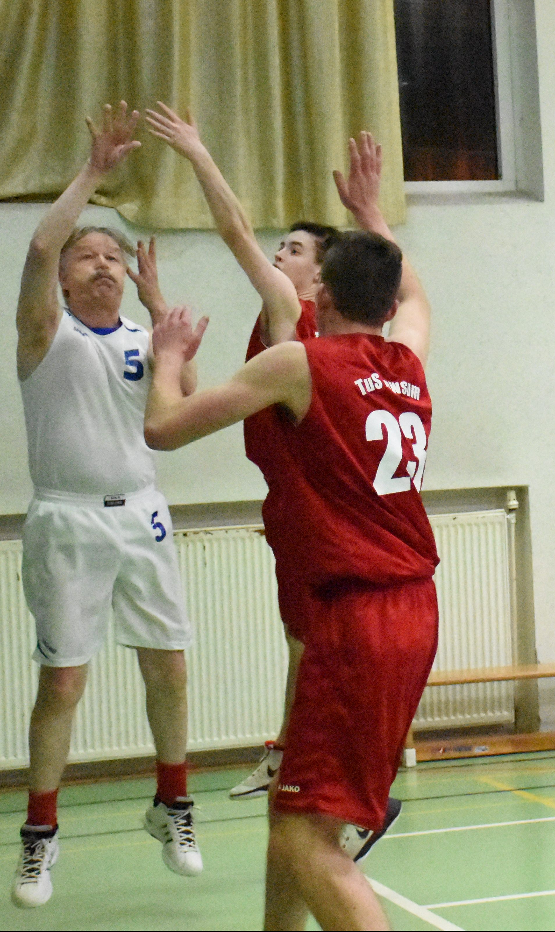 Mit ganz anderer Intensität gingen die Gastgeber dann das dritte Viertel an, setzten die Gäste schon in deren Hälfte unter Druck und zogen so schnell davon. Durch einen 23:2-Lauf entschied Logabirum das Spiel frühzeitig für sich und lag vor dem Schlussviertel 71:36 vorne. Doch Pewsum kämpfte, angetrieben von ihrem Coach Lee Ledbetter, bis zur letzten Sekunde. Unter allen Umständen wollten sie die 100-Punkte-Marke vermeiden. Doch die gelang den Logabirumer Oldies dann doch noch. Jan-Phillip Mathies erzielte 50 Sekunden vor dem Ende den umjubelten Treffer und sorgt damit für den höchsten Saisonsieg der Dritten, die letztendlich mit 103:40 klar die Oberhand behielt.