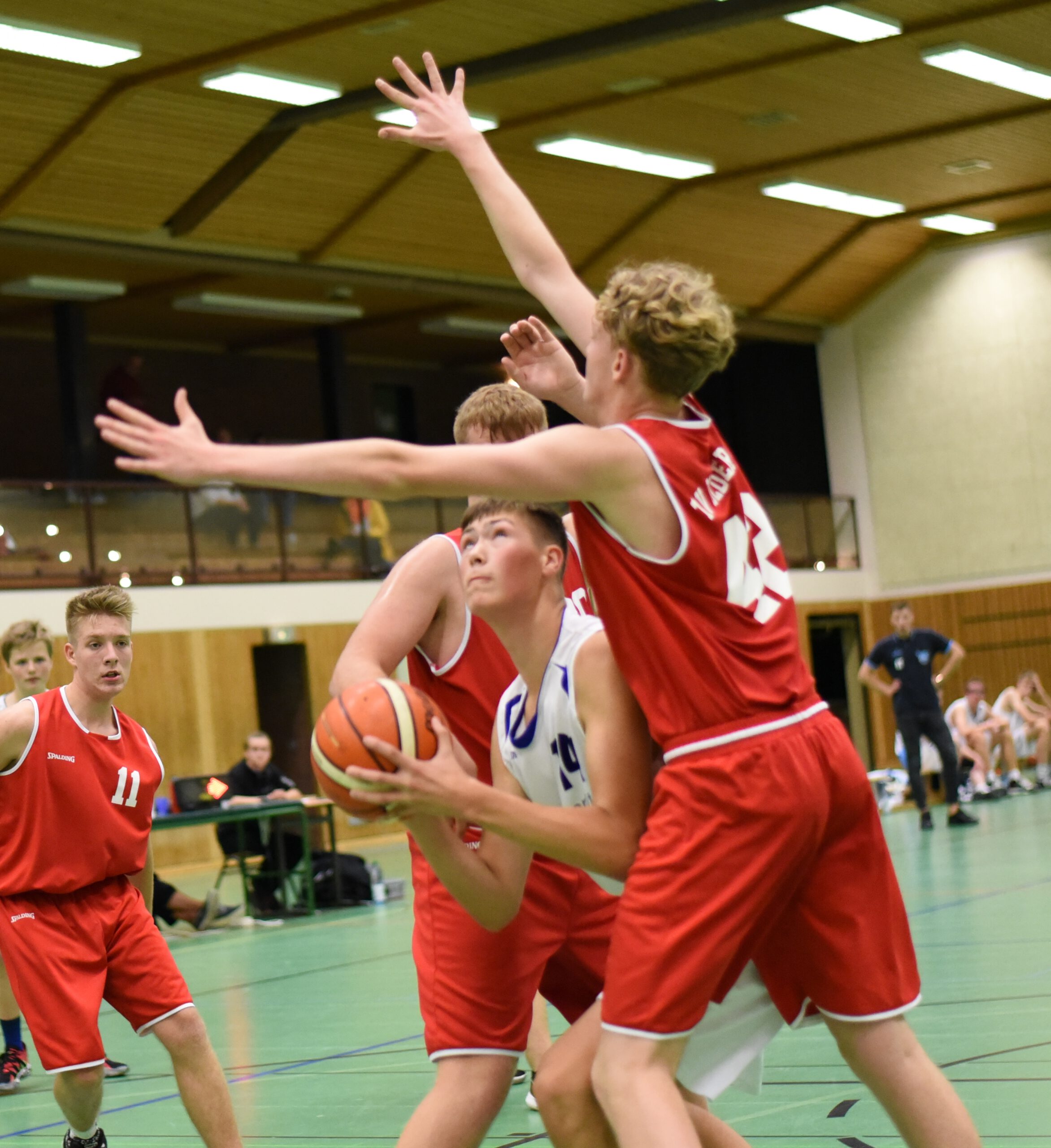 Unsere U18 hat in ihrem ersten Spiel den ersten Sieg eingefahren. Im Kreisderby gegen den TV Oldersum setzte sich die Mannschaft von Aleksandr Truksin nach einem zähen Spiel mit 52:37 durch. Zur Halbzeit lag der Favorit noch 21:22 hinten.